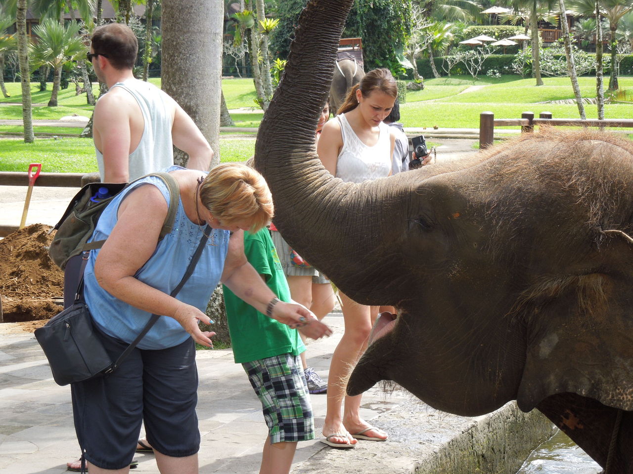 象乗りが終わった後、象にえさをあげたり、象と写真を撮ったり