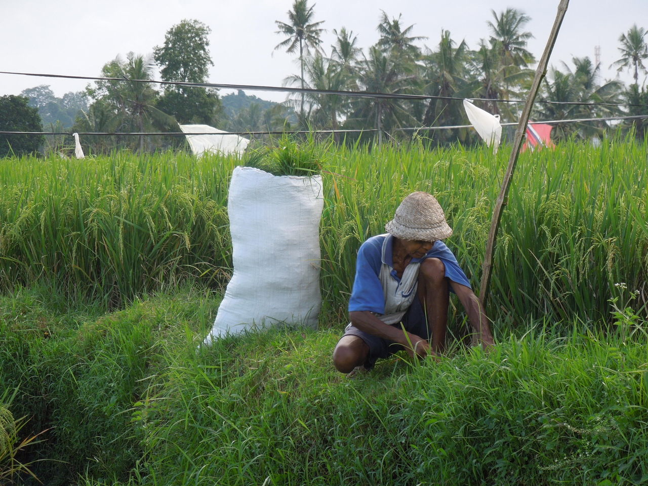 黙々と草刈をしているおじいさん。